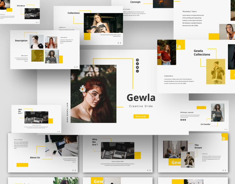 Gewla Creative Business Google Slide — це багатоцільовий креативний креативний шаблон Презентація — це багатоцільовий шаблон презентації, який можна використовувати для будь-якого типу презентації: ділової, портфоліо, корпоративної, брендингової, рекламної тощо.