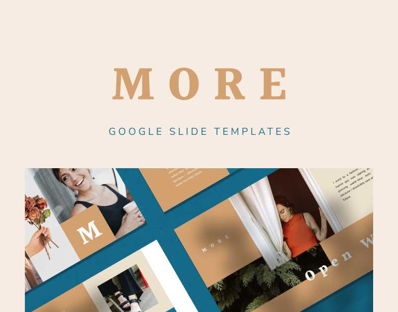 More пропонує вам простий, сучасний і теплий шаблон презентації. Кольори підкреслять відображені зображення та підійдуть до будь-яких фотографій, меблів та модних виробів. Не турбуйтеся про функціональність, оскільки її можна повністю редагувати, щоб забезпечити відповідність вашим потребам. Текстовий простір створено достатньо широким, але все ще пропорційним, щоб аудиторія була добре поінформованою. Створіть свою привабливу презентацію з More зараз!