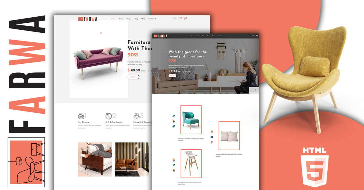 Шаблон веб-сайту Farwa Modern Furniture Store HTML5 містить 33 повністю підтверджені сторінки з функціонуючою контактною формою. Розробляючи HTML5-шаблон веб-сайту Farwa Modern Furniture Store, ми додали кілька макетів і розділів із підтримкою RTL, які незабаром з’являться на сторінці та сторінці поширених запитань.