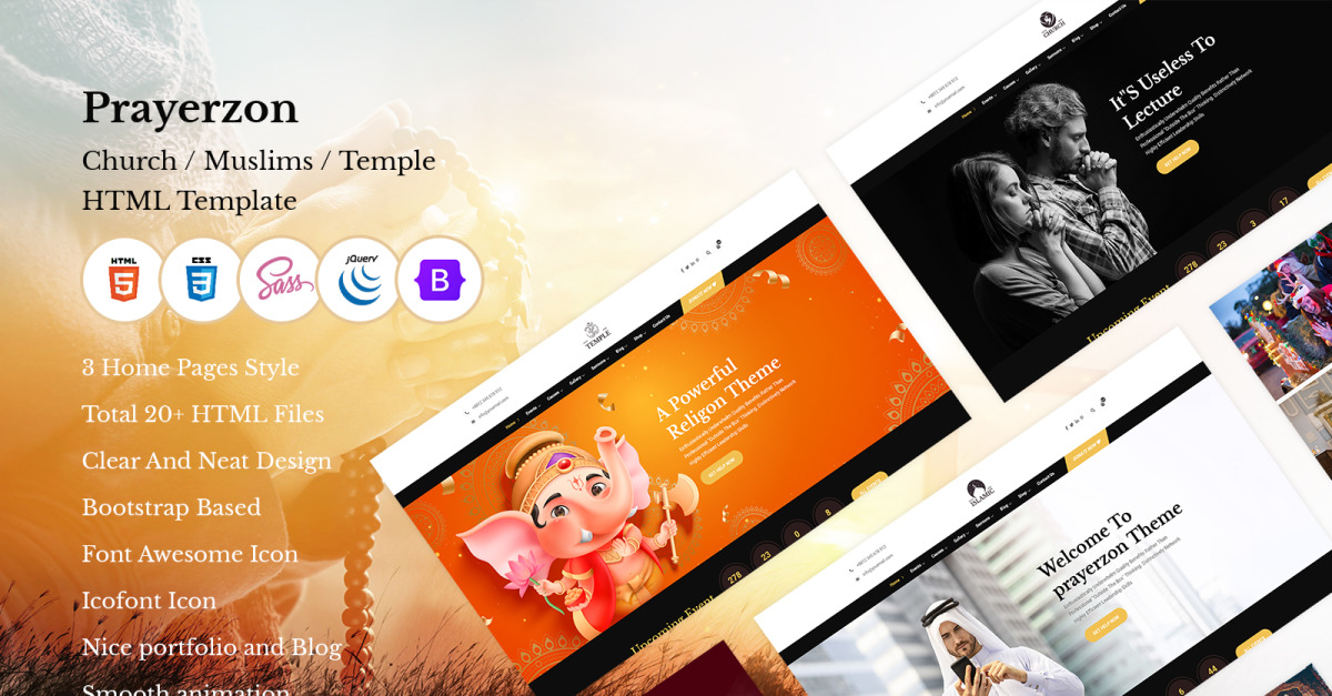 Цей елемент був розроблений для релігійних цілей веб-сайту, особливо для мусульман, церкви та храму. Ми намагаємося розробити унікальний UI/UX і новітню технологію інтерфейсу. Ми використовуємо технології bootstrap 5, SaaS, Js, HTML, CSS тощо. Безперечно, цей шаблон готовий до retina, повністю чуйний і швидко завантажується. Цей шаблон сайту має гарну документацію та стандартну структуру коду. Якщо ви шукаєте унікальний і актуальний адаптивний шаблон релігійного сайту, ми настійно рекомендуємо його, і після покупки, якщо у вас виникнуть проблеми, ми допоможемо вам якомога швидше.