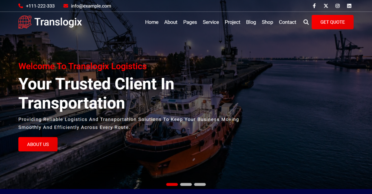 TransLogix — це потужний та гнучкий HTML-шаблон , розроблений виключно для логістичних компаній, експедиторів, кур'єрських служб та постачальників транспортних послуг . Розроблений з використанням сучасних технологій HTML5, CSS3 та JavaScript , він забезпечує швидкий та зручний для мобільних пристроїв веб-сайт , що підвищує довіру клієнтів та стимулює зростання бізнесу. Від демонстрації послуг, цін та блогів до просування проектів, тематичних досліджень та партнерської співпраці , TransLogix забезпечує ваш бізнес усім необхідним у професійному та зручному для користувача логістичному макеті , який забезпечує обидва...