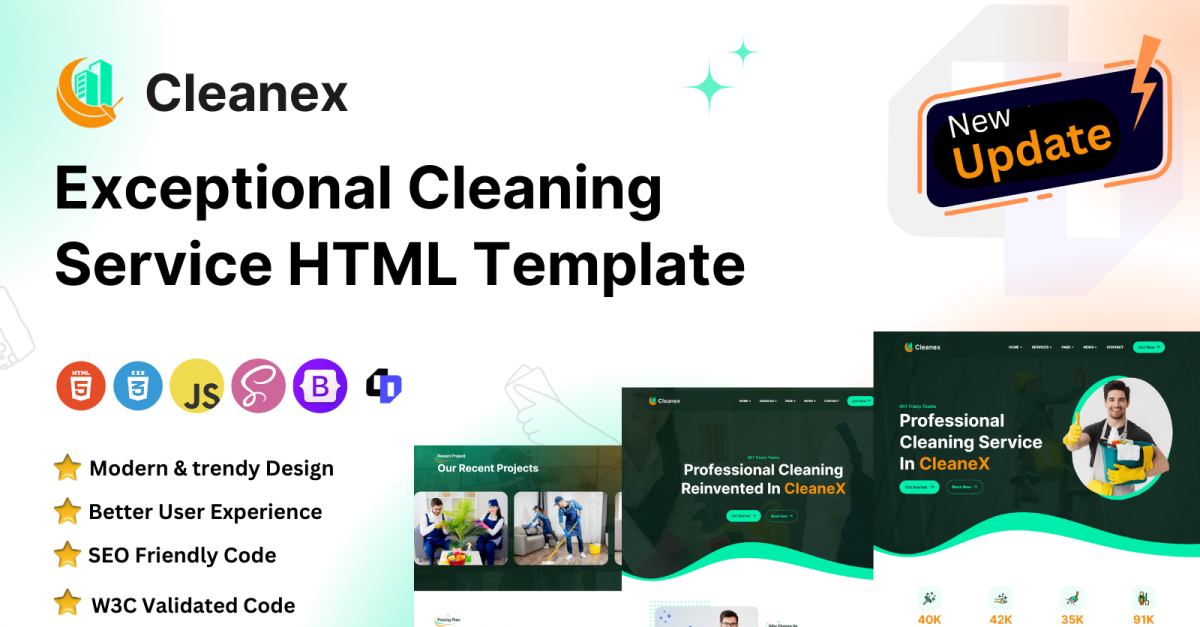 Підніміть свій бізнес з прибирання на нову висоту за допомогою Cleanex, виняткового HTML-шаблону Janitorial, створеного для успіху на ринку TemplateMonster. Розроблений компанією DiscreteDev, цей адаптивний шаблон переосмислює онлайн-присутність клінінгових послуг, обіцяючи неперевершену чистоту та професіоналізм.