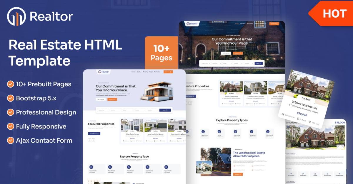 Представляємо «Ріелтор» — складний HTML-шаблон, розроблений спеціально для фахівців з нерухомості, списків нерухомості, орендної нерухомості та агентств з управління нерухомістю. Незалежно від того, чи ви демонструєте житлову нерухомість, комерційні списки чи керуєте орендованими одиницями, Realtor надає надійну платформу для демонстрації вашого портфоліо та залучення потенційних клієнтів.