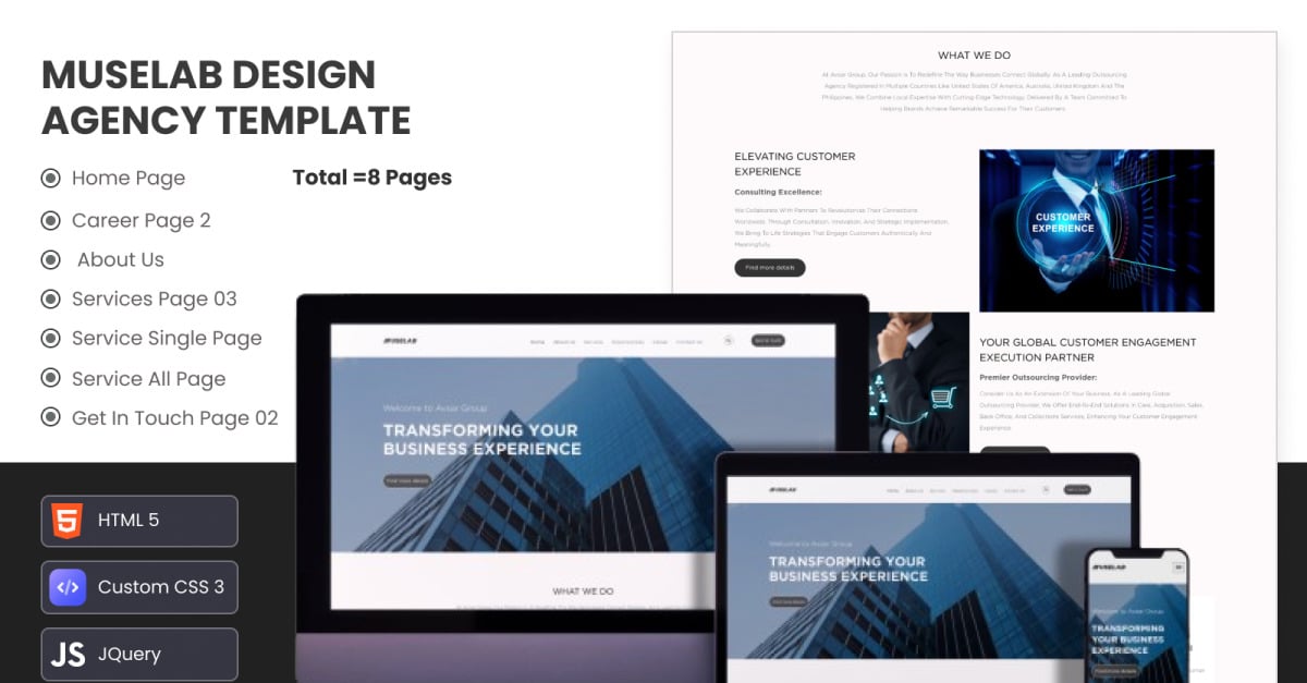 MuseLab — це більше, ніж просто HTML-шаблон веб-сайту Digital Agency; це плацдарм для авангардних креативних агентств, щоб продемонструвати свою майстерність і захопити клієнтів із першого ж кліка. Створений із прискіпливою увагою до деталей і непохитною відданістю інноваціям, MuseLab дає вам змогу створювати свій унікальний наратив і зробити вашу агенцію лідером у цифровому середовищі, що постійно розвивається.