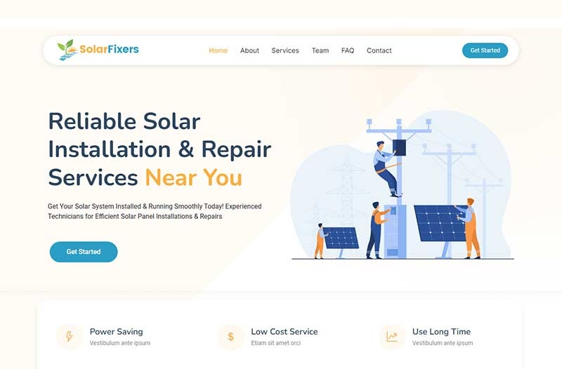 SolarFixers – HTML-шаблон веб-сайту служби встановлення та ремонту сонячних панелей