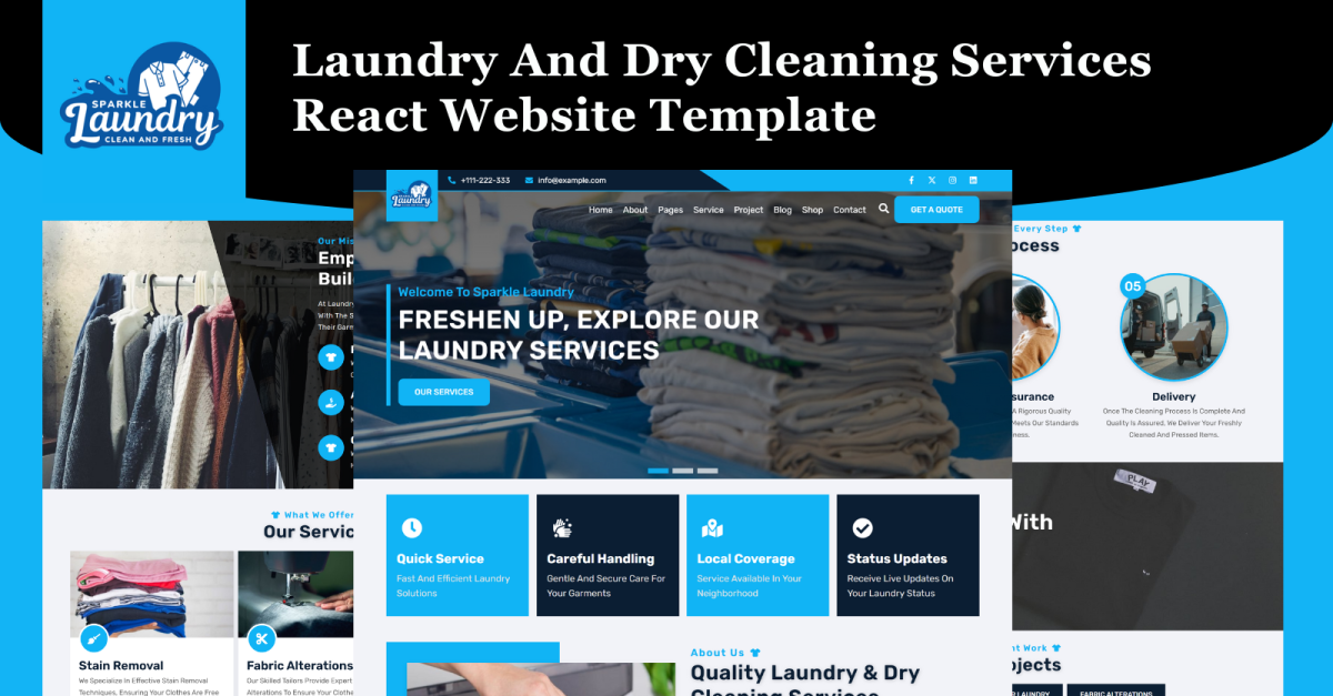 Sparkle — це ретельно розроблений шаблон React, розроблений виключно для пралень та хімчисток. Створений за допомогою React.js, сучасного JavaScript та адаптивного CSS3, він забезпечує найвищу продуктивність, інтуїтивно зрозумілу навігацію та бездоганний візуальний досвід на всіх пристроях. Sparkle пропонує ідеальне цифрове рішення для демонстрації професійних послуг з чищення, підкреслення досвіду в догляді за одягом та безперешкодного управління бронюванням клієнтів. Завдяки своєму чистому, свіжому дизайну та клієнтоорієнтованим функціям, Sparkle допомагає компаніям створювати довіру, оптимізувати операції та підкреслювати надійність, ефективність та преміальний догляд за тканинами як для індивідуальних, так і для комерційних клієнтів.