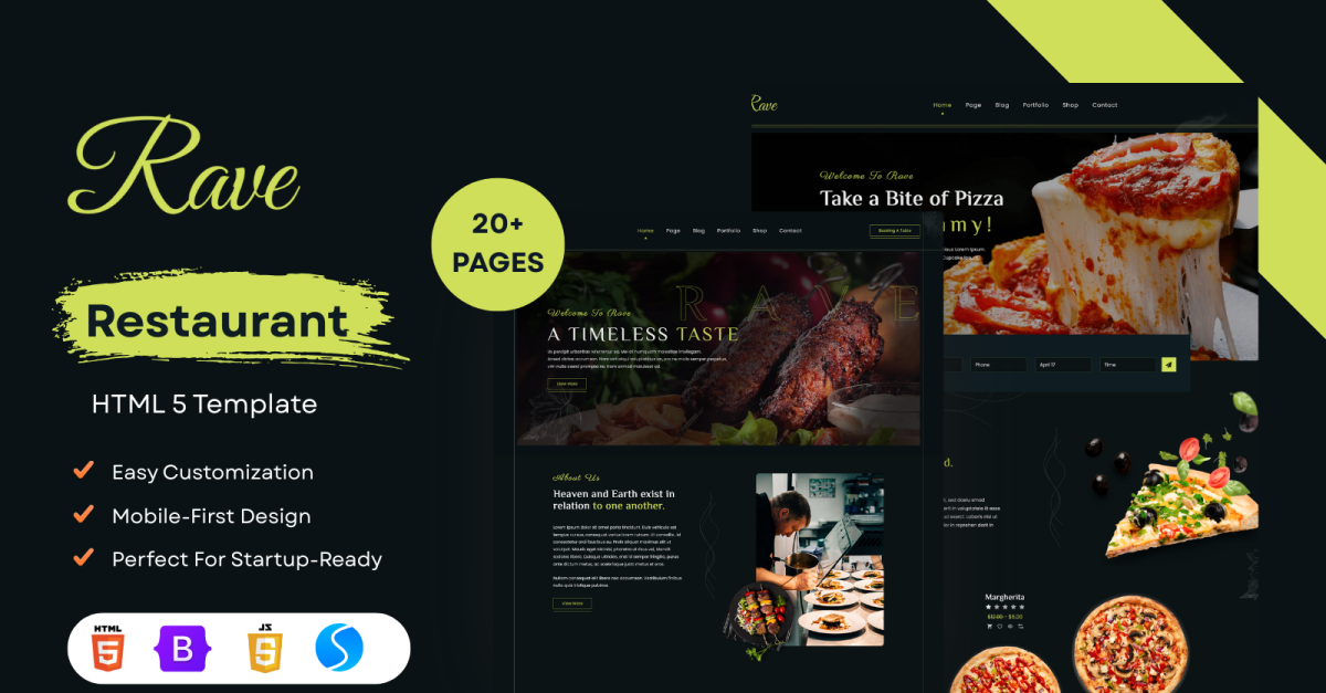 Rave — це сучасний та адаптивний шаблон ресторану на Bootstrap 5, розроблений для ресторанів, кафе, бістро та підприємств, пов'язаних з харчуванням. Завдяки чистому та професійному дизайну, цей шаблон забезпечує ідеальну платформу для демонстрації меню, просування спеціальних пропозицій та спрощення онлайн-бронювання. Створений за допомогою найновішого фреймворку Bootstrap, він забезпечує безперебійну роботу на всіх пристроях та браузерах, пропонуючи ідеальний користувацький досвід.
