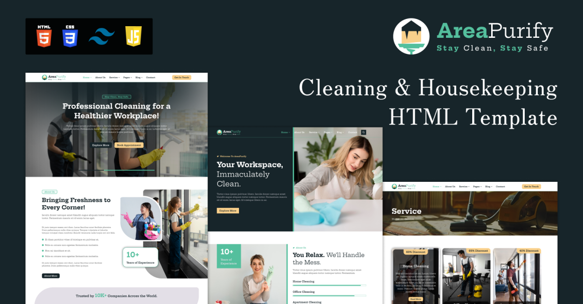 Незалежно від того, чи пропонуєте ви послуги з прибирання дому, офісу, чищення килимів, миття вікон чи будь-який інший вид технічного обслуговування, AreaPurify надає всі необхідні інструменти для професійного представлення вашого бренду. Шаблон розроблено з використанням чистого та організованого коду, що дозволяє легко налаштовувати та адаптувати його до потреб вашого бізнесу.