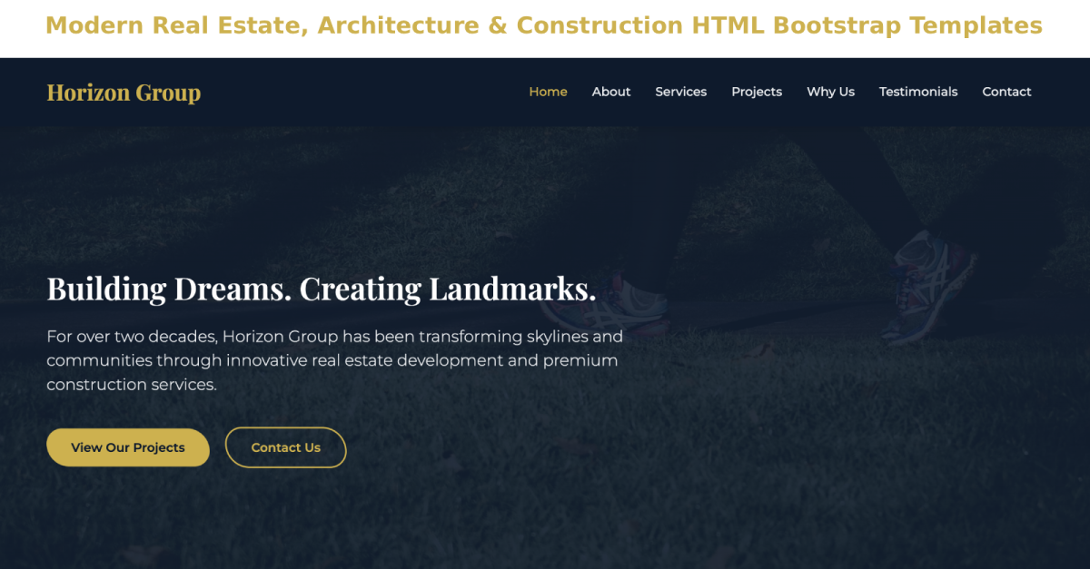 Horizon Group — це сучасний, елегантний та повністю адаптивний шаблон HTML5 для нерухомості та будівництва , розроблений для будівельних компаній, забудовників, агентств нерухомості, архітектурних фірм та корпоративного бізнесу.