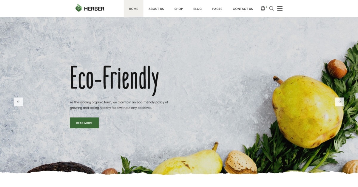 Herber - точний шаблон веб-сайту Інтернет-магазину органічної їжі