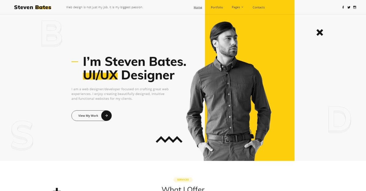 Особиста сторінка може бути мультиінструментом для багатьох випадків. Особливо якщо ви фрілансер і шукаєте нові проекти. У цьому випадку веб-сайт може стати ідеальним рекламним інструментом. Особливо, якщо його розробляли професіонали. Як шаблон HTML Стівена Бейтса. Він містить багато конструктивних особливостей і опцій. Дизайнери зробили його в сучасному стилі, і ви можете прикрасити його під свої потреби. Він також має соціальні можливості для обміну інформацією та відгуками для збору відгуків. Ця тема багатосторінкова, і ви можете багато розповісти про свої навички, попередні проекти та послуги. Ви також можете створити портфоліо, щоб представити свої послуги найкращим чином. Або ви можете розповісти відвідувачам про ціни. Ви також можете використовувати цю тему для створення інших проектів. Він підійде навіть програмній компанії. Тож не витрачайте час і інвестуйте у свою кар’єру прямо зараз.