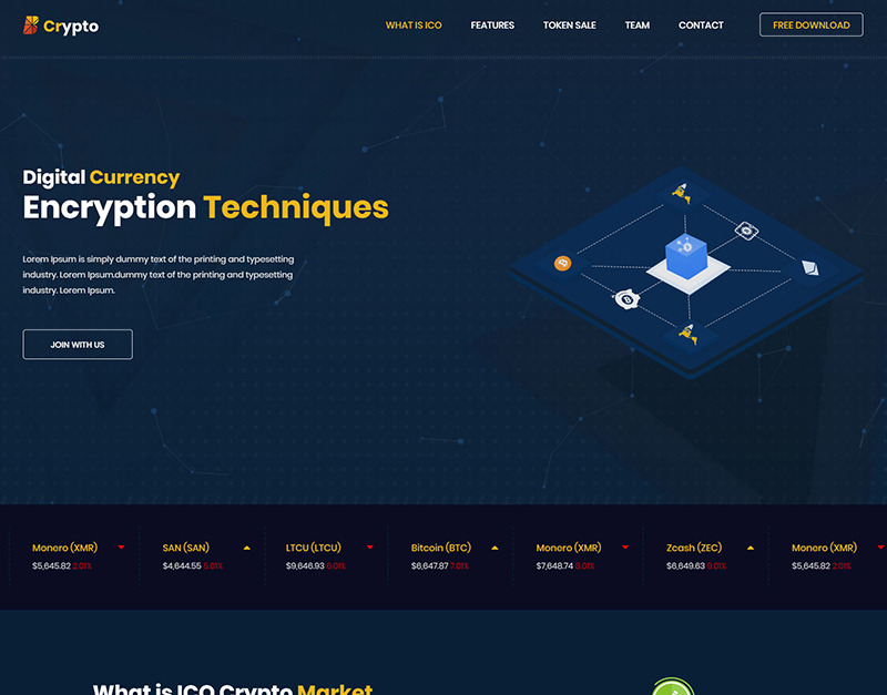 BCrypto – ICO & Crypto Landing Page Template – це високоякісний HTML-шаблон з унікальним стилем і чистим дизайном. Ви можете використовувати його для багатьох цілей, як-от презентація ICO та нові криптовалюти, веб-сайти для майнінгу біткойнів, обмін криптовалютою та торгівля, цифрові валюти, фінанси та бізнес-консультації. А також містить коментарі до кожного розділу, включеного в шаблон, щоб ви могли легко адаптувати свої шаблони відповідно до своїх потреб.