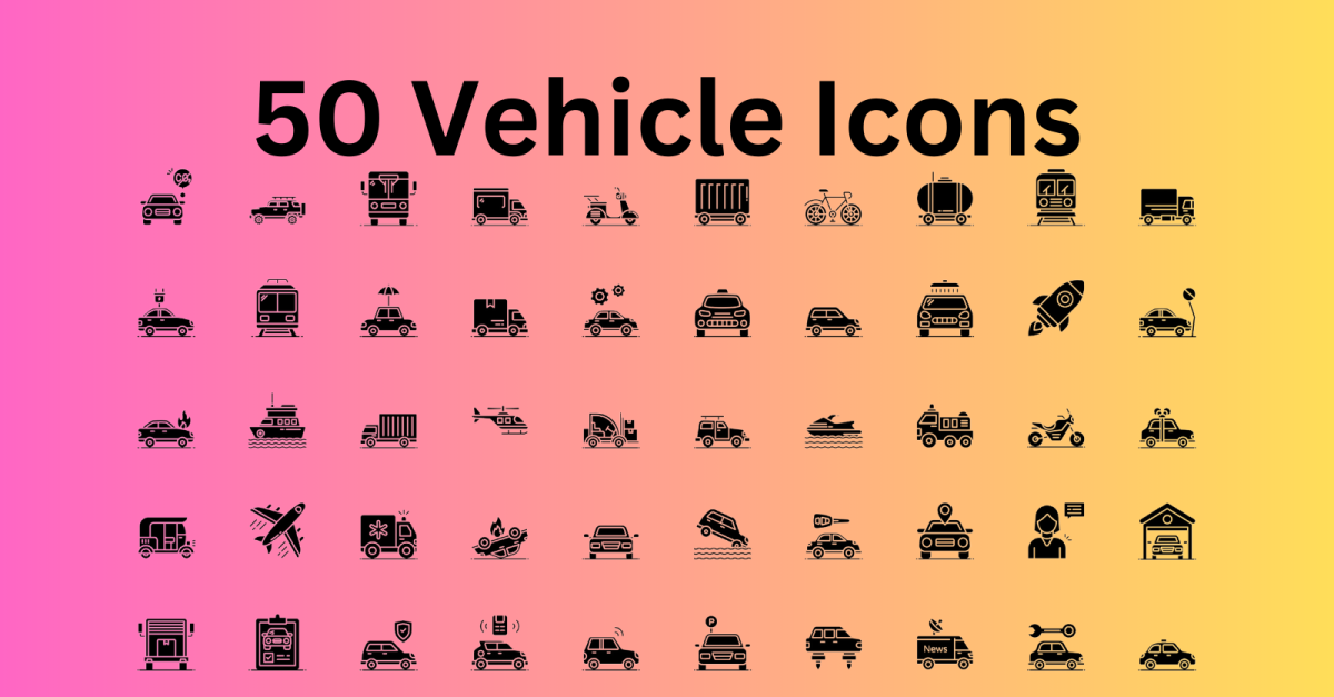 Набір іконок транспортних засобів 50 піктограм гліфів – файли SVG та AI