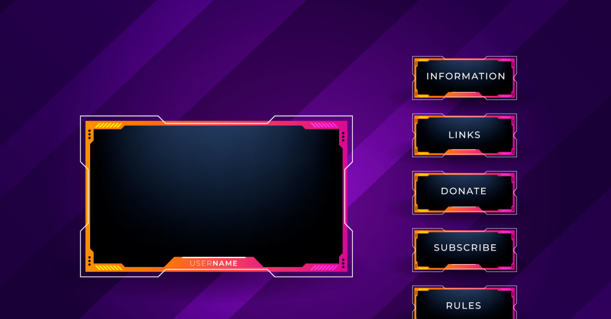 Шаблон ігрової панелі прямого ефіру з дизайном ігрового екрана, чатом у реальному часі та кадрами веб-камери 4 USD Завантажити