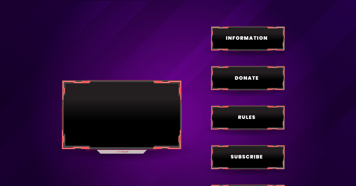 Шаблон ігрової панелі прямого ефіру з дизайном ігрового екрана, чатом у реальному часі та кадрами веб-камери 4 USD Завантажити