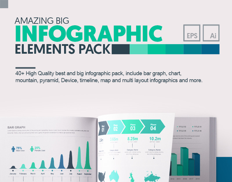 - Усі комплекти інфографіки містять векторні файли AI CS5 та EPS CS5