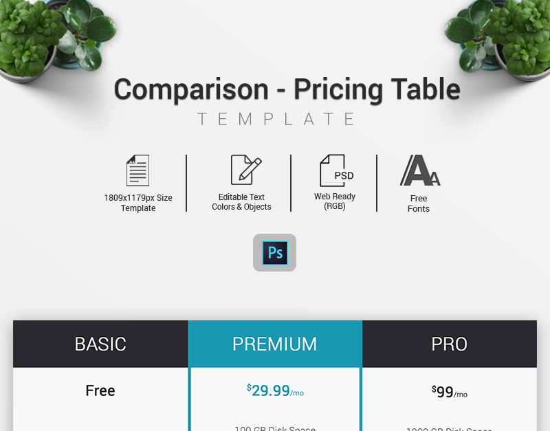 Ця таблиця цін — це таблиця порівняння цін для ваших бізнес-пакетів. Він створений для розвитку вашого веб-бізнесу. Містить 3 упаковки. Товар підтримує сучасні стандарти дизайну та типографіки . Ви можете легко редагувати його за допомогою програмного забезпечення Adobe Photoshop. Дизайн чистий і професійно структурований. Отже, просто завантажте його та насолоджуйтеся J