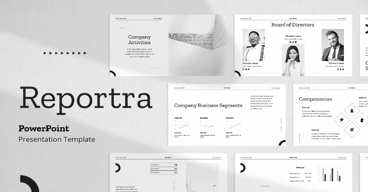 Під час створення шаблону презентації річного звіту Reportra ми в основному зосередилися на компаніях і приватних особах, які працюють у різних сферах, які хочуть надати акціонерам та іншим зацікавленим людям інформацію про діяльність і фінансові показники своєї компанії. Якщо ви робите ставку для нового важливого клієнта чи бізнес-портфоліо, цей шаблон PowerPoint дозволить вам швидко й ефективно перетворити вашу інформацію та дані на презентацію.