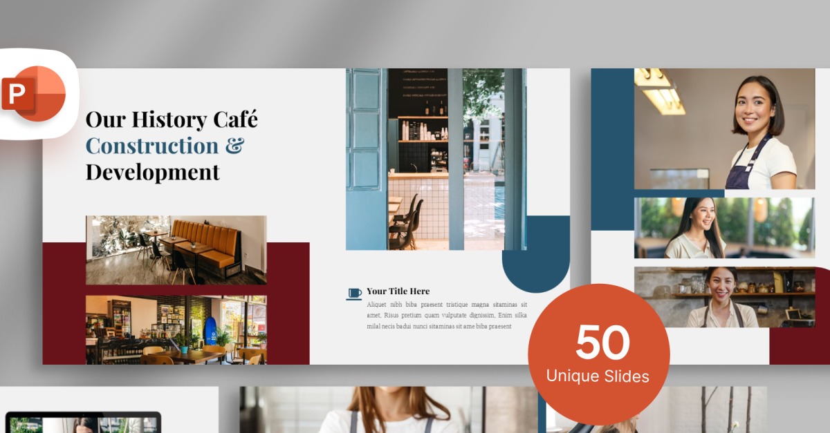 Cafe Construction and Development — шаблон презентації про будівництво та розвиток кафе.