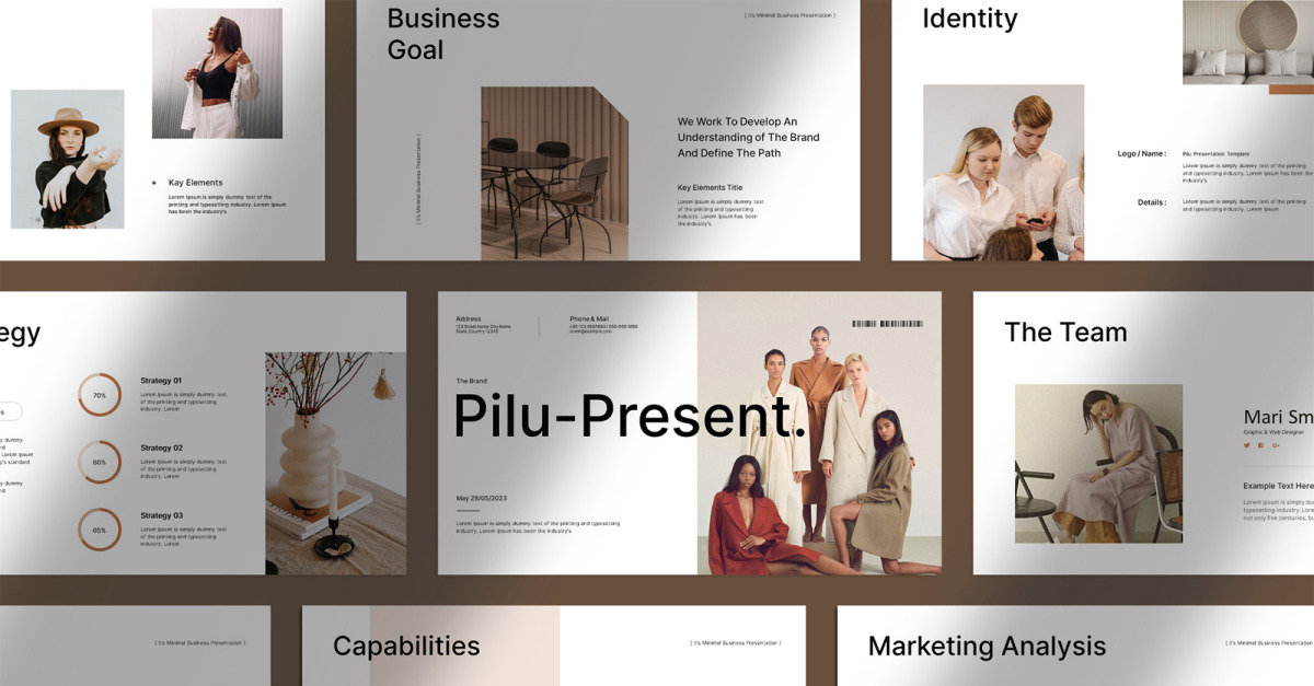 Експортуйте та надсилайте клієнтам у форматі pdf, pptx. Легко замінити типографіку та фірмові кольори на власні. Шаблон Minimal Business Template — це класичний позачасовий чистий дизайн, натхненний одним із моїх улюблених брендів: Aesop.