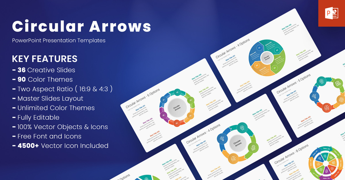 Шаблони PowerPoint із круговими стрілками – це візуально привабливі та універсальні інструменти для презентацій, які містять набір взаємопов’язаних вигнутих стрілок, розташованих у круговому або циклічному візерунку. Ці шаблони розроблені, щоб допомогти вам ефективно передати широкий спектр концепцій, ідей та процесів. Ось переконливий опис шаблонів PowerPoint із круговими стрілками: