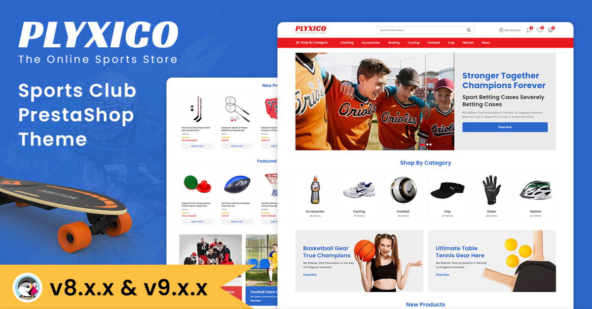 Plyxico: Тема PrestaShop для магазину спортивного, ігрового та фітнес-товарів – це яскраве та сучасне рішення, розроблене для інтернет-магазинів фітнес-, ігрового та спортивного обладнання. Plyxico гарантує безперебійний досвід покупок на всіх платформах завдяки своєму візуально привабливому та адаптивному дизайну. Для покращення взаємодії з користувачем та збільшення продажів вона має складні фільтри товарів, опції швидкого перегляду, безпечне оформлення замовлення та сумісність з PrestaShop. Вона ідеально підходить для створення високопродуктивного магазину, який поєднує практичність з динамічним дизайном завдяки SEO-оптимізації, швидкій швидкості завантаження, багатомовній підтримці та легкості модифікації. Ідеально підходить для сміливих та динамічних спортивних компаній.