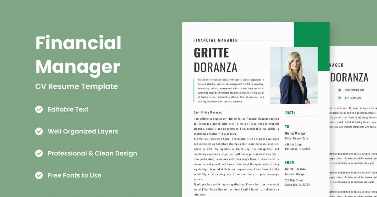 CV Resume Financial Manager V5 – найкращий вибір для фінансових менеджерів, які шукають видатне резюме 15 USD Завантажити