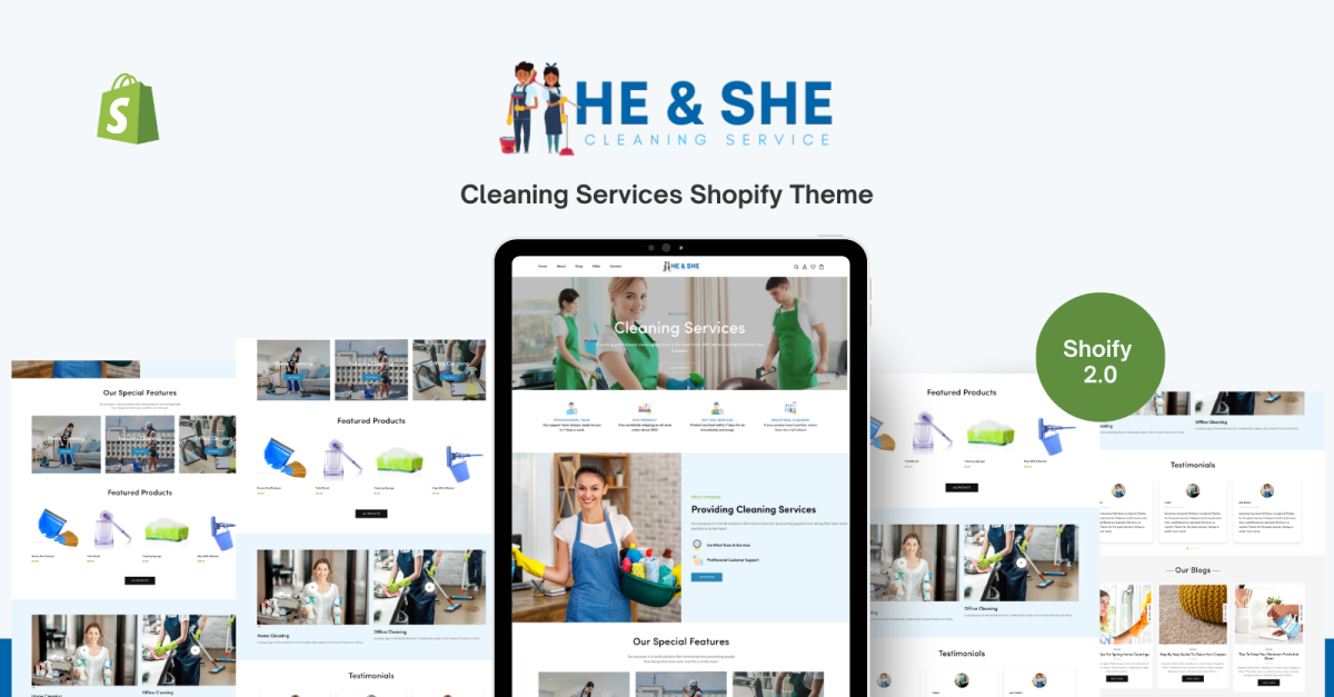 Тема Shopify «He & She Cleaning Services» – це витончений та зручний шаблон, розроблений спеціально для клінінгових компаній. Завдяки своєму лаконічному та сучасному дизайну ця тема забезпечує професійну та надійну онлайн-присутність для клінінгових компаній. Інтуїтивно зрозумілий макет дозволяє відвідувачам легко орієнтуватися та знаходити важливу інформацію про пропоновані послуги. Тема містить високоякісні зображення та графіку, які демонструють чистоту та професіоналізм, пов'язані з клінінговою індустрією.