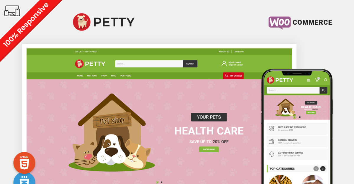 Шаблон Petty Responsive WooCommerce — це сучасний, стильний і повністю адаптивний шаблон Wordpress. Це може бути найкращим рішенням для таких магазинів, як корм для собак, котів, догляд за тваринами, зоомагазин, догляд за домашніми тваринами, розведення домашніх тварин, доставка їжі, притулок для домашніх тварин, домашніх тварин, аксесуарів тощо. Професійний та елегантний вигляд шаблону буде ключовим аспектом.