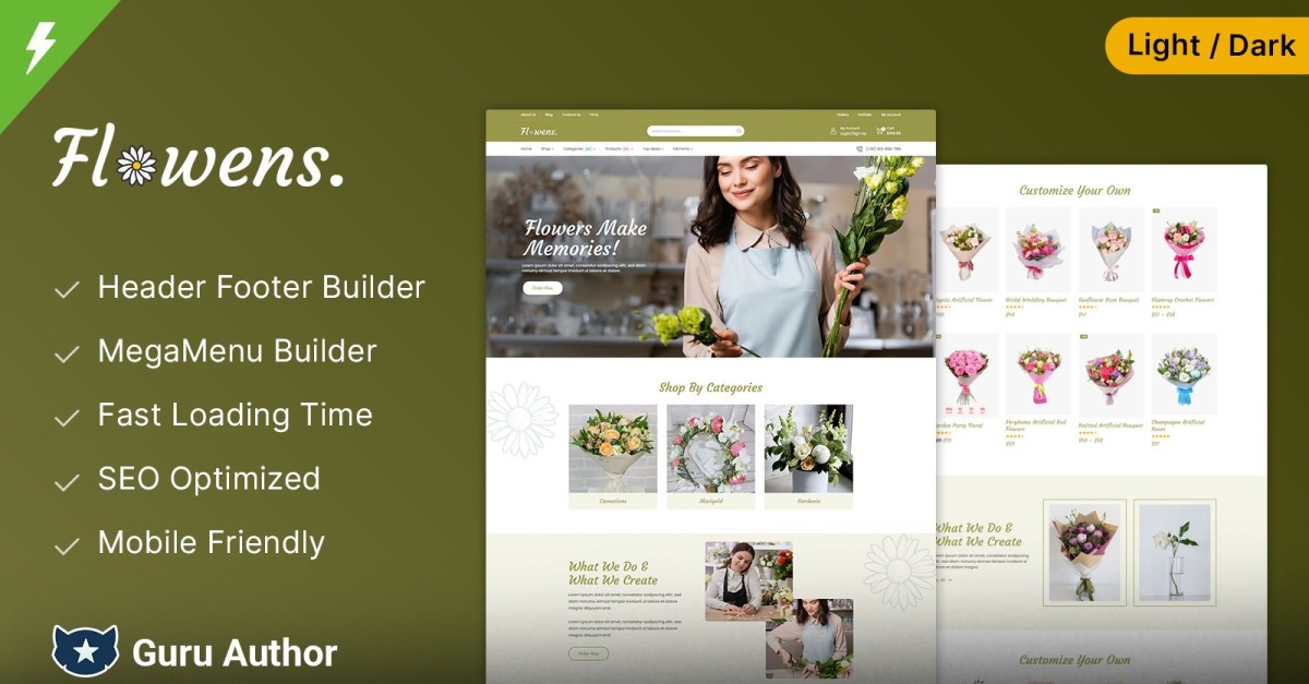 Flowens — це чудово розроблена тема WooCommerce, створена для квіткових магазинів, флористів і сувенірних магазинів. Завдяки елегантному дизайну, плавній навігації та багатофункціональному дизайну він є ідеальним онлайн-магазином для продажу живих квітів, букетів, подарунків і декоративних рослин.