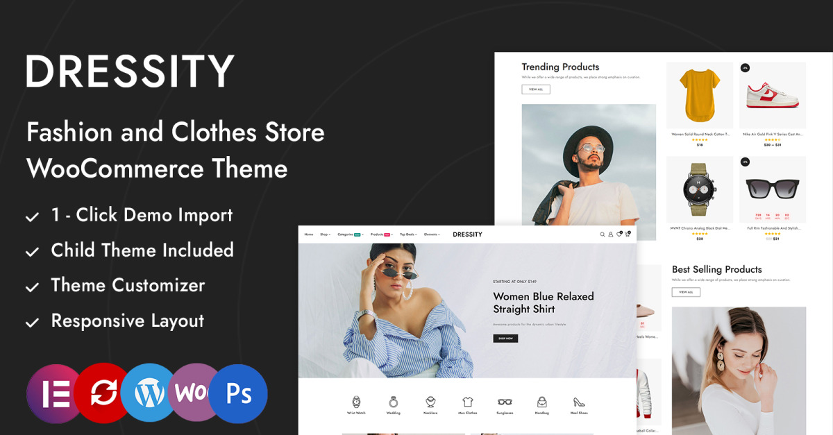 Dressity — це складна та багатофункціональна тема WooCommerce, розроблена для сучасних магазинів моди та одягу. Створений з урахуванням точності та естетики, він ідеально підходить для демонстрації одягу, аксесуарів, взуття та товарів для стилю життя в елегантному професійному інтернет-магазині.