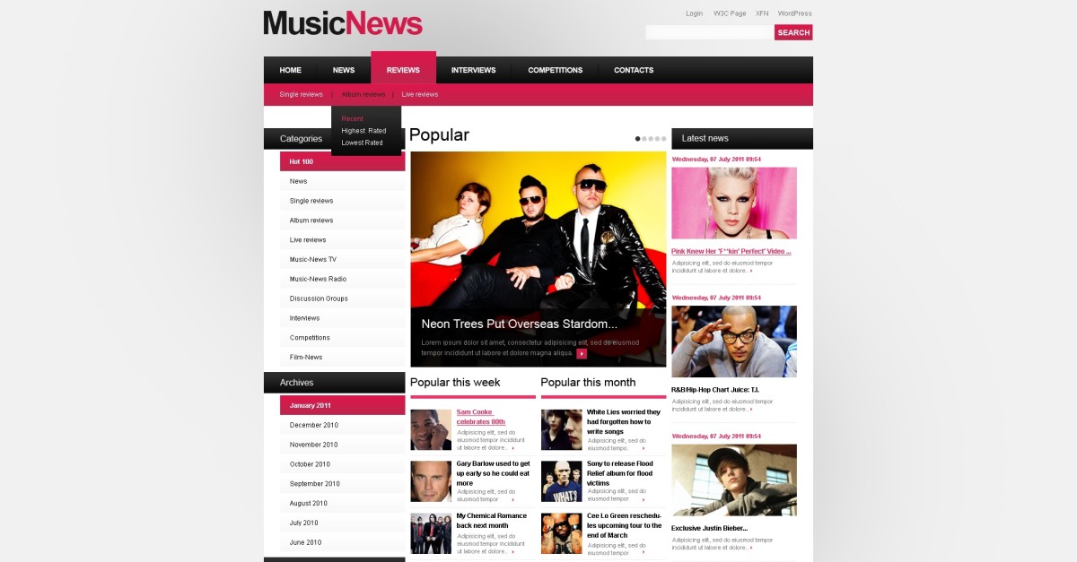 Безкоштовні шаблони WordPress на порталі музики