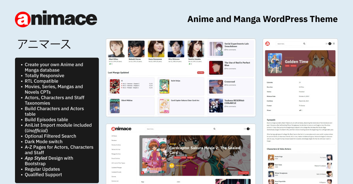 ANIMACE – тема WordPress аніме та манги + RTL