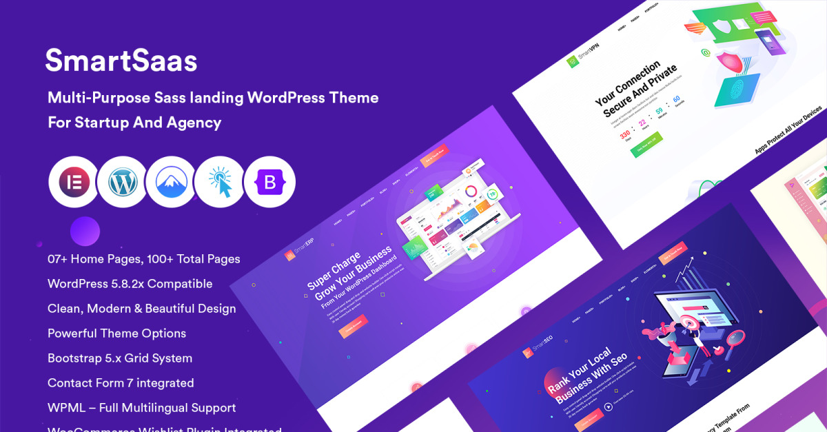 SmartSaas - багатоцільова тема WordPress для посадки Sass для запуску та агентства