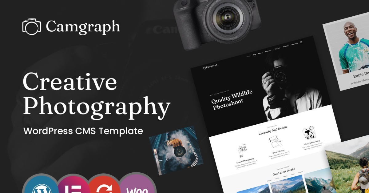 Якщо ви хочете продемонструвати свою роботу та підвищити свій ентузіазм щодо фотографії, незалежно від того, чи є ви фотографом, редактором фотографій і відео чи ведете про це блог, вам знадобиться фантастичний веб-сайт. Більше нікуди не шукайте! Шаблон WordPress CMS для Camgraph — ідеальний вибір для вас! У цьому шаблоні є різні блоки, які ефективно відображатимуть ваш вміст. Крім того, ця тема повністю адаптивна та доступна для редагування, що дозволяє швидко змінювати кожен елемент. Крім того, привабливі ефекти наведення та переходи приваблюють відвідувачів і покращують їхній досвід.