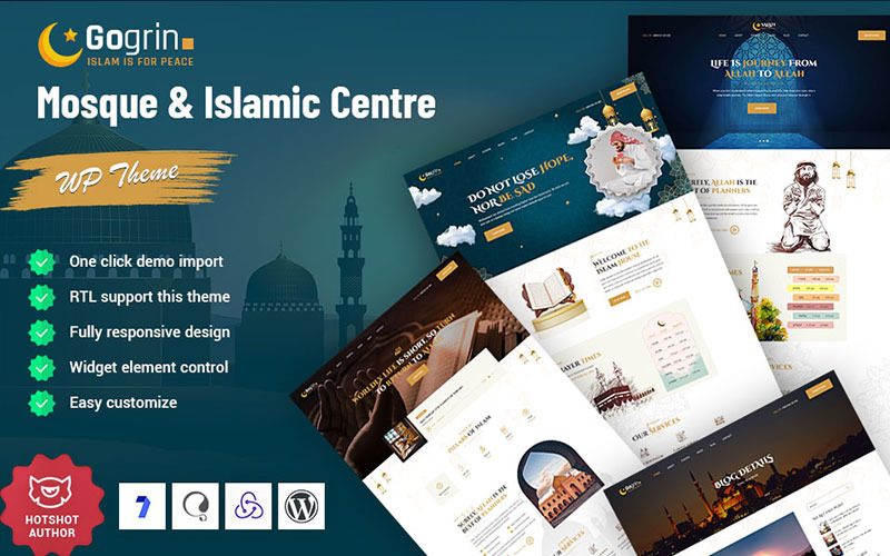Gogrin — це тема WordPress для мечеті та ісламського центру. Тема Gogrin була розроблена в сучасному, мінімальному та елегантному стилі, який можна використовувати для ісламських центрів, мечетей, ісламських організацій, ісламських шкіл та університетів, ісламських бібліотек тощо. Він підходить як для мусульман, ісламів, так і для немусульман. Gogrin — це тема, яку можна використовувати для будь-яких цілей. Ця тема має багато функцій, таких як необмежена кількість варіацій кольорів, адаптивний дизайн, макет сторінки на всю ширину, власні віджети та багато іншого.