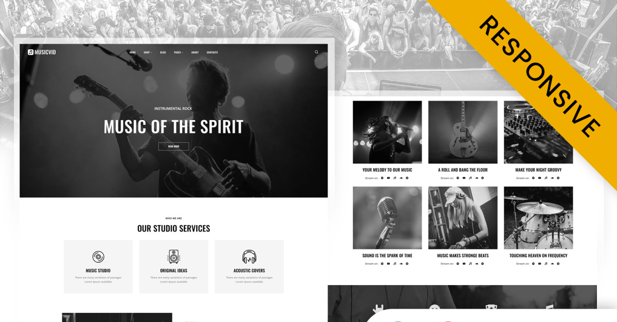 Musicvid – Адаптивна тема WordPress Elementor для музики, інструментів і виконавців