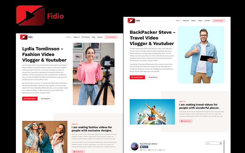 Тема WordPress для портфоліо youtuber fidio розроблена, щоб елегантно та візуально привабливо продемонструвати вашу творчу роботу, проекти та досягнення. Незалежно від того, чи є ви ютубером, блогером, відеоблогером, виробником відео, відеоредактором чи будь-яким іншим творчим професіоналом, наша тема портфоліо надасть вам ідеальну платформу для демонстрації ваших талантів і навичок потенційним клієнтам, роботодавцям або співробітникам. Тема включає бізнес-запити, такі як партнерство, спонсорство, робота, консультування, аналіз, запити тощо.