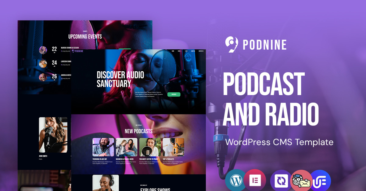 Podnine - Подкаст і радіо Тема WordPress Elementor