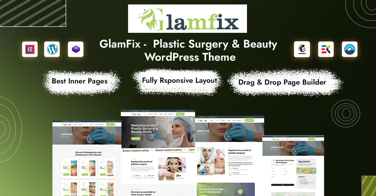 GlamFix — це сучасна, адаптивна та елегантна тематика WordPress, розроблена для клінік пластичної хірургії та різних медичних веб-сайтів. Спеціально розроблена для лікарень, медичних клінік, оздоровчих центрів і клінічних закладів, ця тема також підходить для практикуючих лікарів, таких як хірурги, лікарі, стоматологи, педіатри, психіатри, серед іншого в галузі охорони здоров’я. Він може похвалитися передовим, практичним дизайном з усіма важливими функціями, необхідними для медичного веб-сайту.