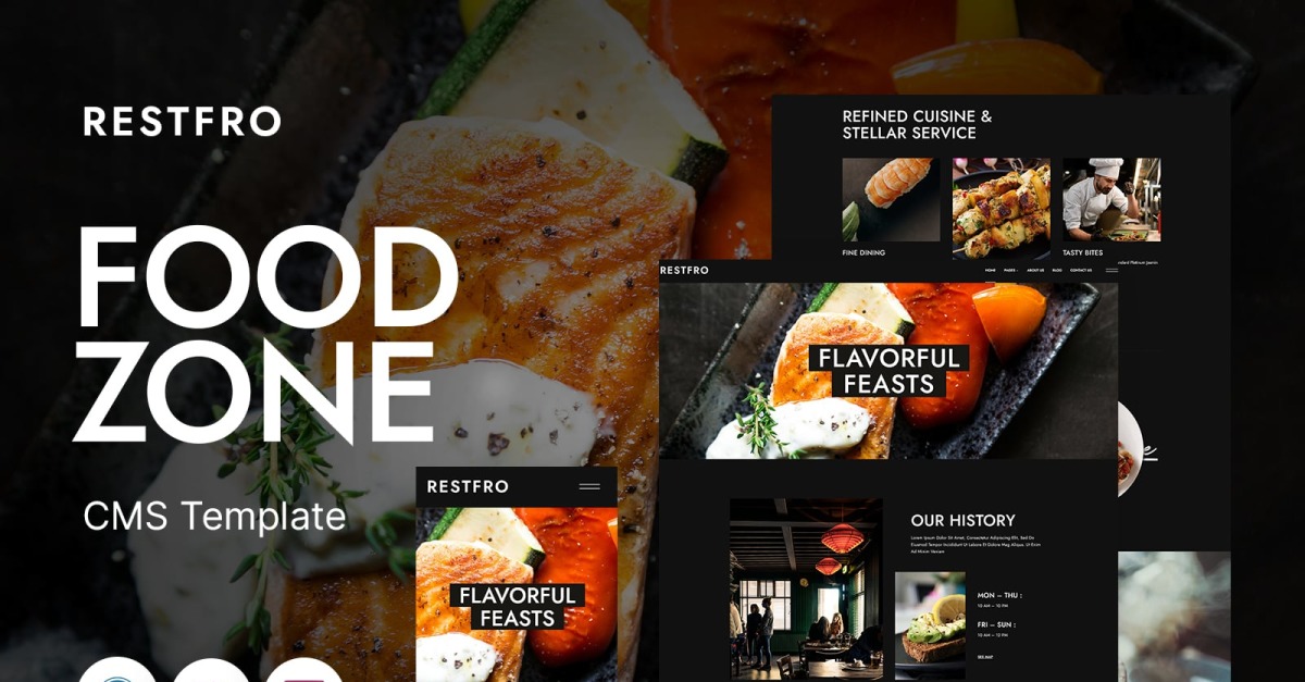 - Елегантний дизайн ресторану: Restfro має елегантний, апетитний дизайн, який поєднує високоякісні зображення їжі та яскраві кольори, які викликають відчуття свіжості. Макет забезпечує плавний перегляд із розділами, присвяченими меню, профілям шеф-кухаря, відгукам клієнтів і формам бронювання.