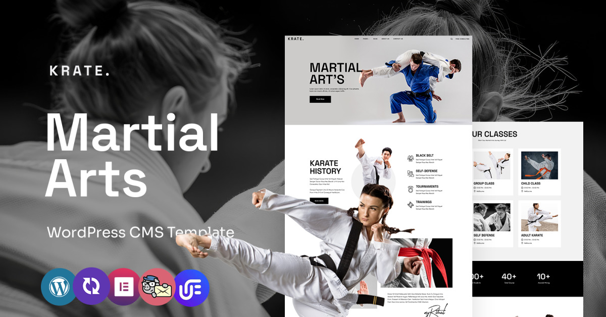 Krate – багатоцільова тема WordPress Elementor для школи бойових мистецтв і тренувань