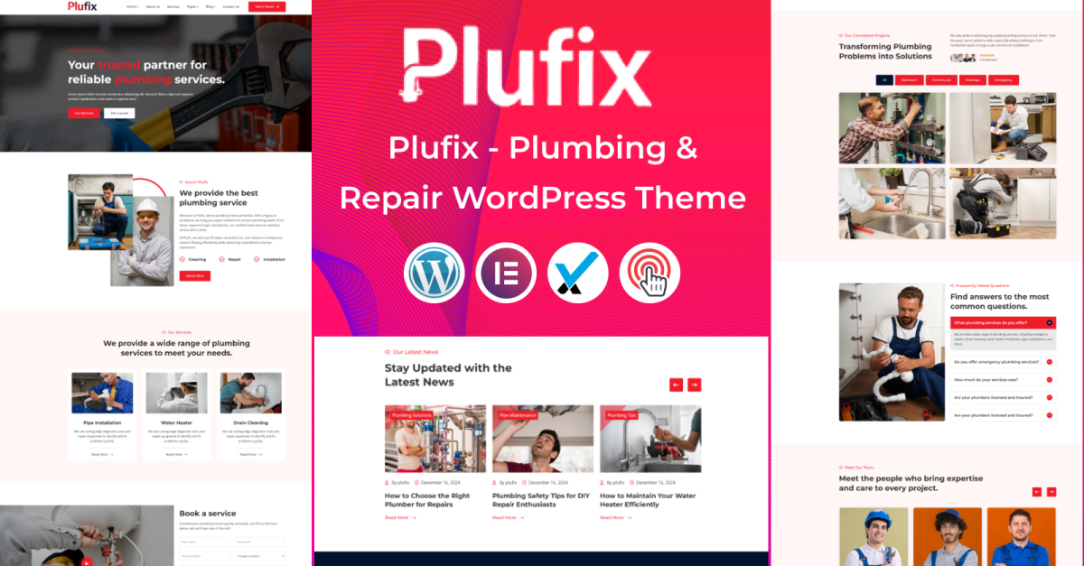 Plufix — це сучасна, адаптивна та багатофункціональна тема WordPress, спеціально розроблена для підприємств сантехніки, технічного обслуговування та ремонту. Незалежно від того, керуєте ви сантехнічною компанією чи пропонуєте індивідуальні послуги, Plufix надає всі інструменти, необхідні для створення професійної та привабливої присутності в Інтернеті.