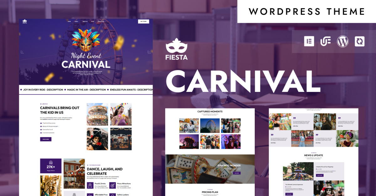 Оживіть магію свят за допомогою Fiesta, ретельно розробленого шаблону WordPress, створеного виключно для організаторів карнавалів і фестивалів, планувальників заходів і культурних свят. Якщо ви демонструєте грандіозний вуличний парад, яскравий музичний фестиваль або місцевий культурний ярмарок, цей шаблон стане вашим ідеальним супутником, щоб захопити вашу аудиторію.