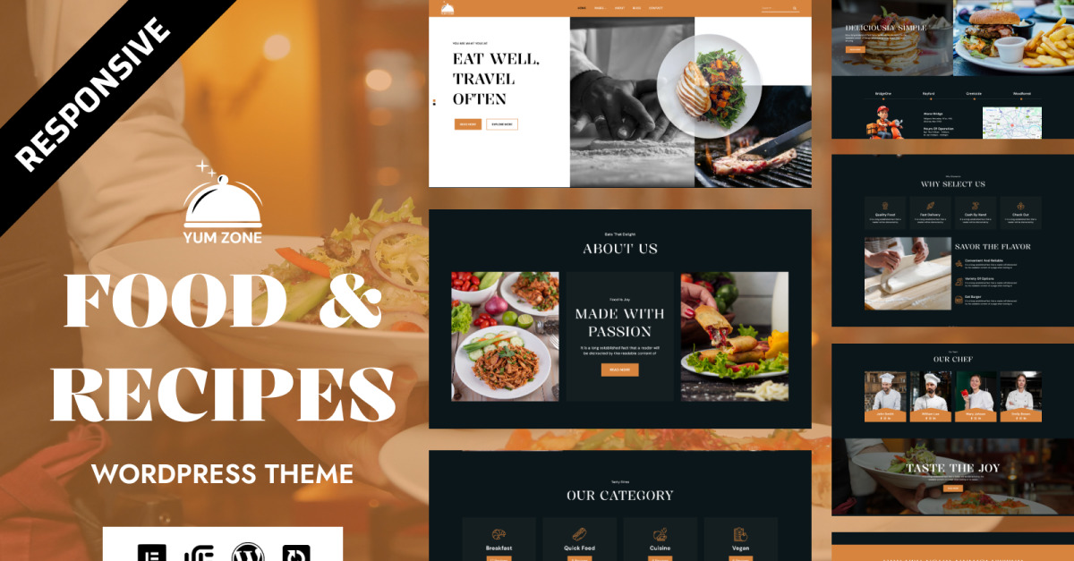Yum Zone - Рецепти та кулінарні поради Тема WordPress Elementor