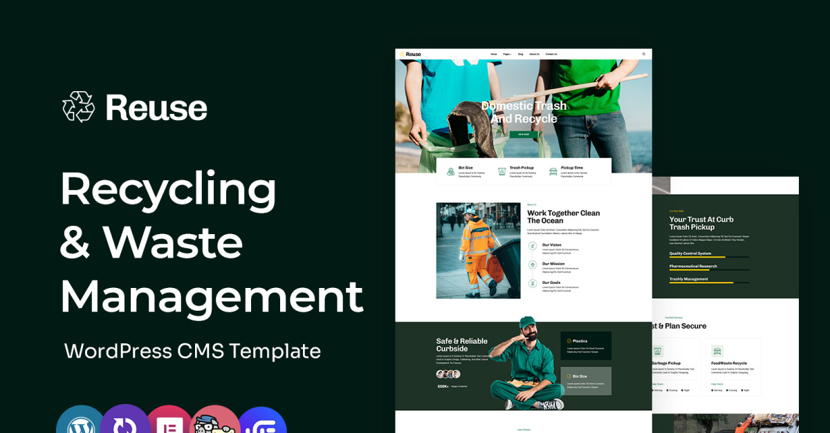 Reuse — це сучасна та екологічно свідома тема WordPress, ретельно розроблена для центрів переробки, компаній з управління відходами, екологічних проектів та підприємств, орієнтованих на сталий розвиток. Завдяки потужним інструментам дизайну та лаконічним макетам, Reuse допомагає вам просувати екологічні ініціативи, демонструвати послуги з переробки та залучати вашу громаду до чистішої планети.