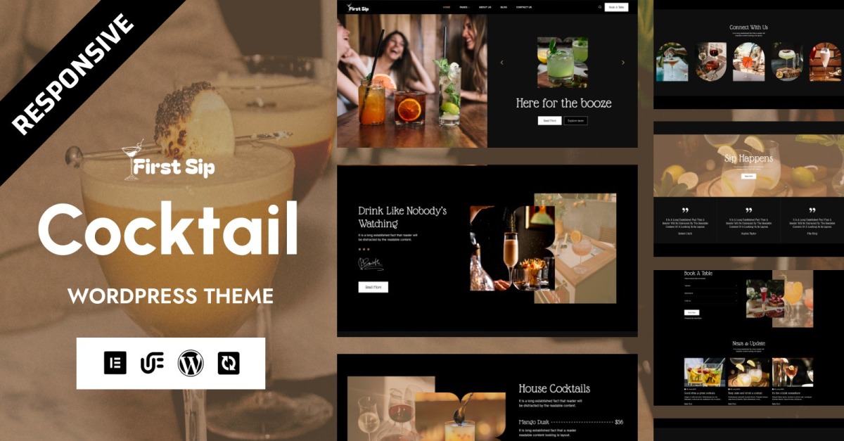 First Sip - сучасний коктейль-бар та нічне життя WordPress Elementor тема