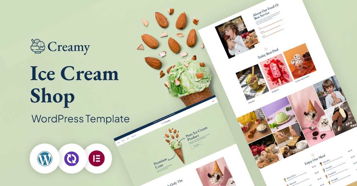 Creamy – шаблон Elementor для WordPress CMS, що містить смачне морозиво