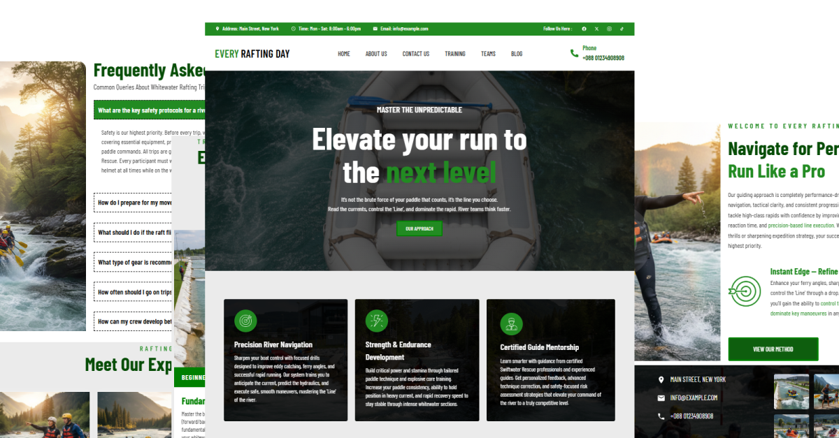 - Високовізуальний та динамічний дизайн: Сучасна, ефектна естетика, яка ідеально передає енергію пригод на бурхливій воді, допомагаючи вам справити сильне перше враження на потенційних клієнтів.