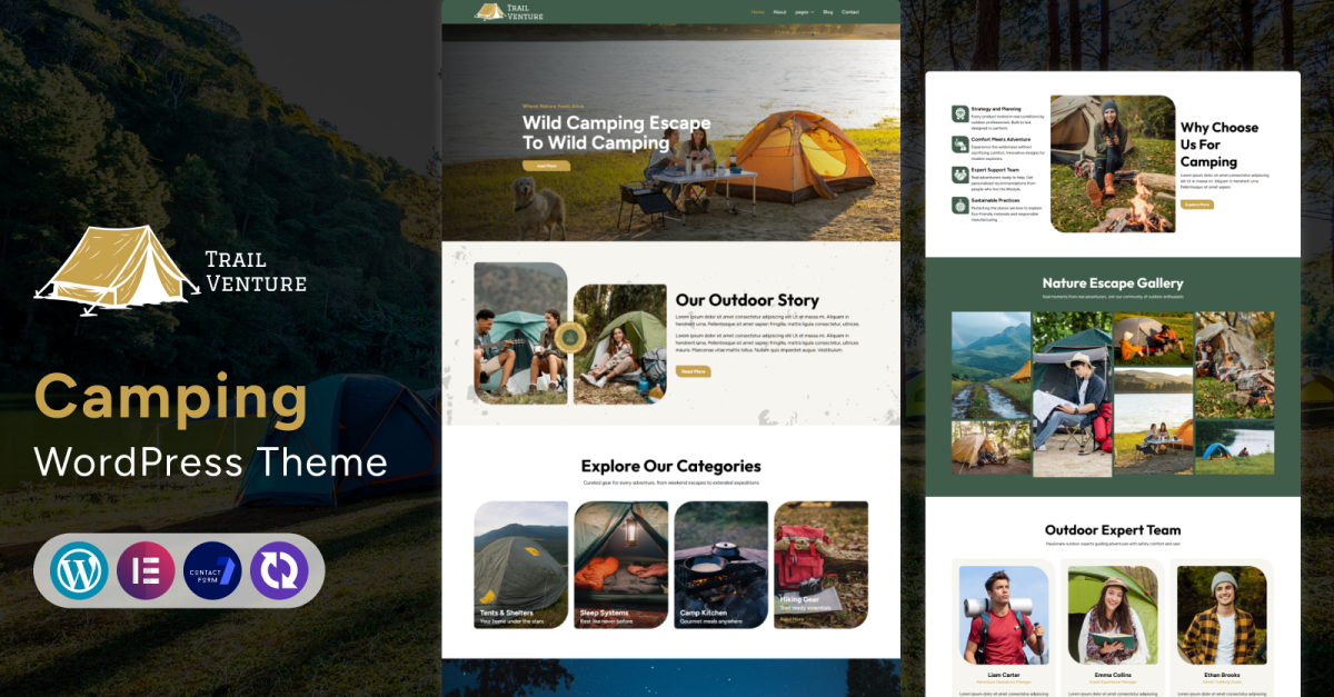 TrailVenture — це сучасна тема WordPress, натхненна природою, створена для кемпінгу, пригод на природі, трекінгу та подорожей. Розроблена для того, щоб передати справжній дух дикої природи, TrailVenture поєднує захопливу візуальну складову з чистим, зручним макетом — ідеально підходить для демонстрації спорядження для кемпінгу, історій про активний відпочинок, блогів про подорожі та послуг, пов’язаних з пригодами.